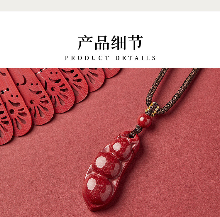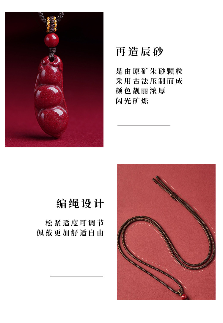 项链材质: 再造辰砂+编绳(商称:朱砂)